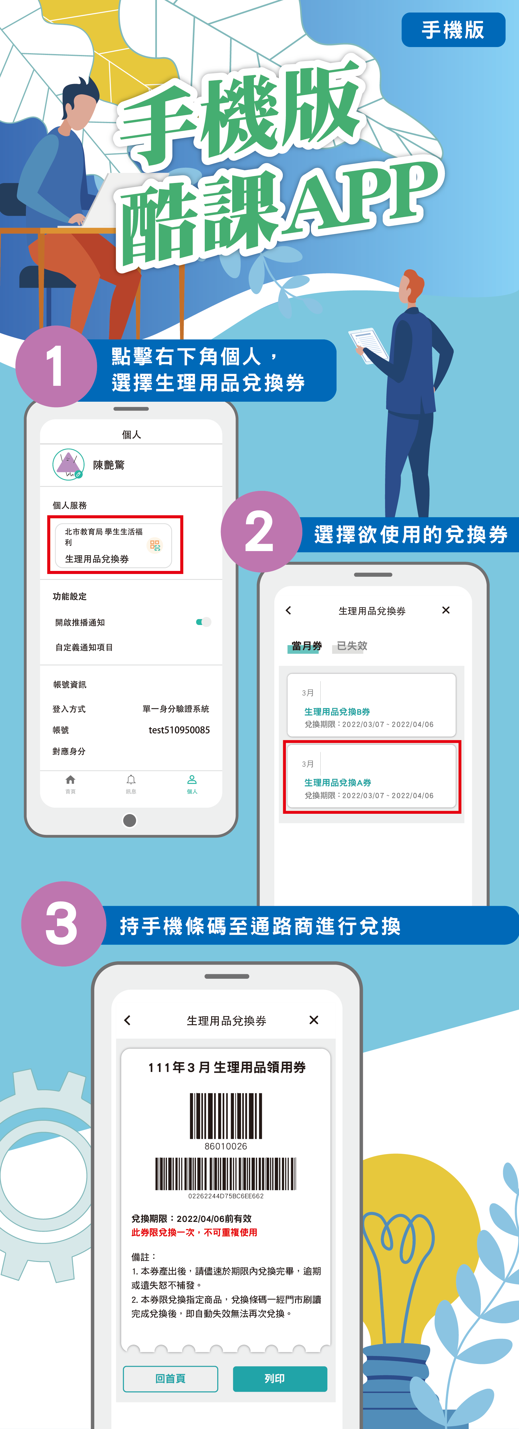 (二)兌換券須使用「學生本人」之帳號密碼登入方能取得,無法透過家長帳號親子綁定之方式取得。