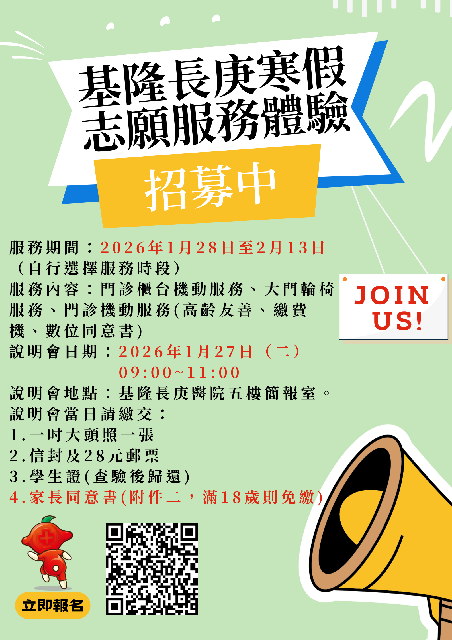 四、說明會日期/地點:2026年1月27日9:00於基隆長庚醫院五樓簡報室。